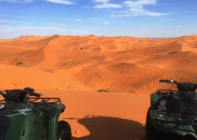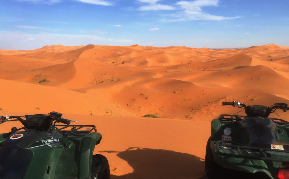 Breakfast is the first event in the program. The destination today is Merouga. On the way to it, we are to cross many towns and cities. The cities and towns are as follows: Azro, Midelt, Ziz valley, Errachidia, and Erfoud as well as Risani. These places include optional and inevitable stops, like lunch. At the end, we check in Merzouga this afternoon. Of the most popular drinks over the world is tea, mint tea glass is offered just after the arrival. Camel riding is the next thing to spend the night in in an atmosphere of music and boarding Sund.